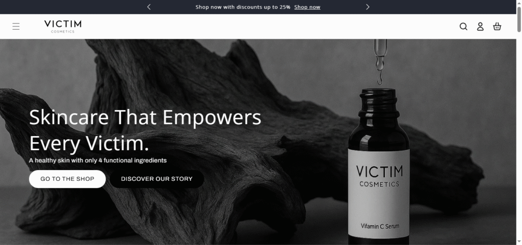 reated a bold and interactive Shopify store for Victim Cosmetics. Focused on product visibility, brand cohesion, and an enjoyable online shopping experience for beauty enthusiasts.
