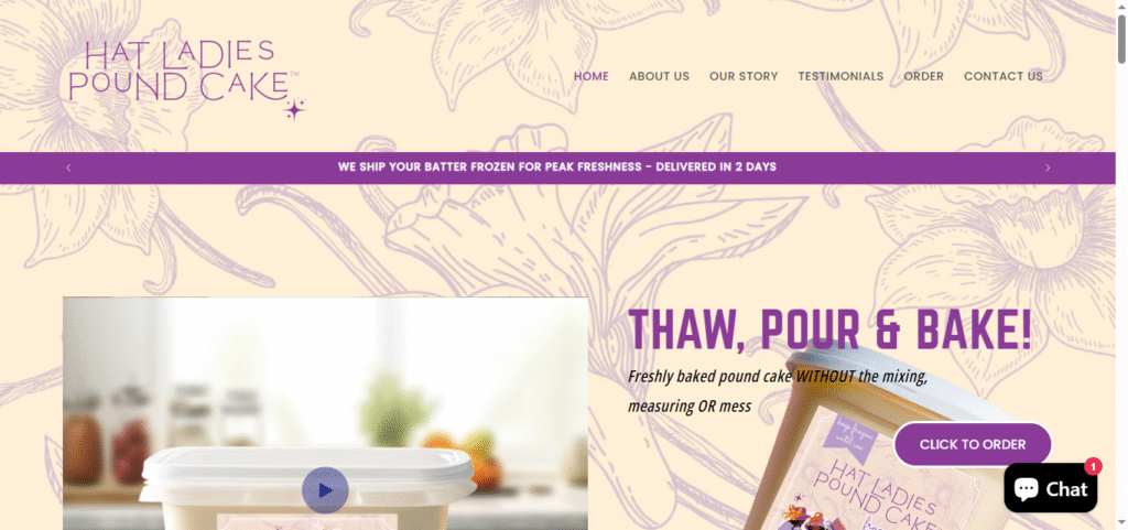 Designed a visually appealing Shopify store for Hat Ladies Poundcake, showcasing baked goods with a focus on user-friendly navigation, product presentation, and online ordering experience.