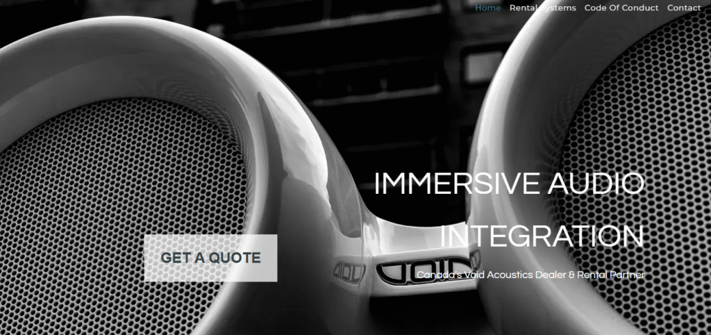 A professional audio solutions website for Poppin Audio, showcasing premium sound systems, immersive audio products, and event rental services with clean design and clear user navigation.