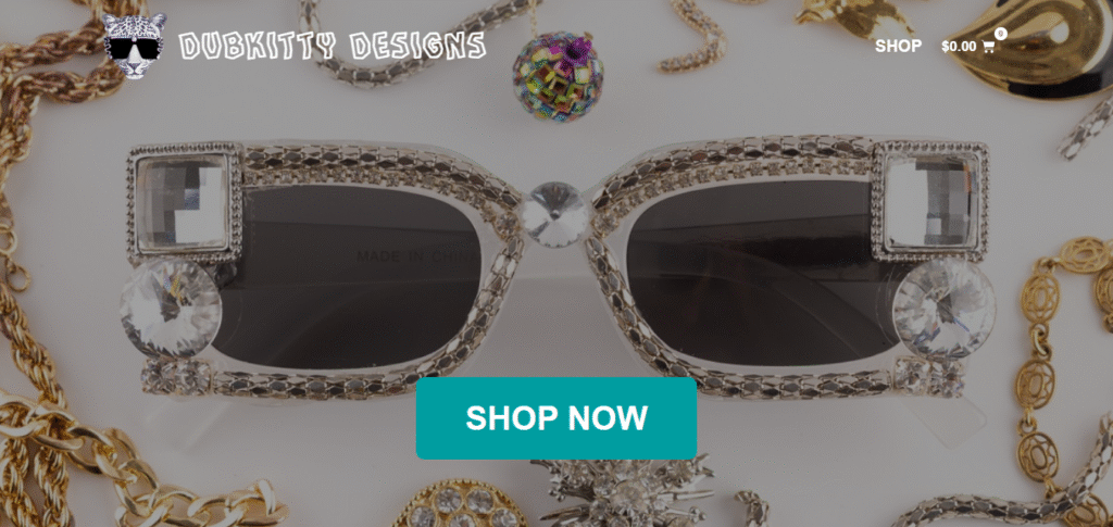 A creative portfolio site featuring Dubkitty Designs’ art, products, or design services with engaging visuals.